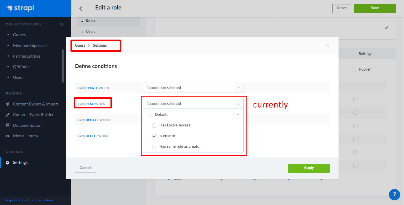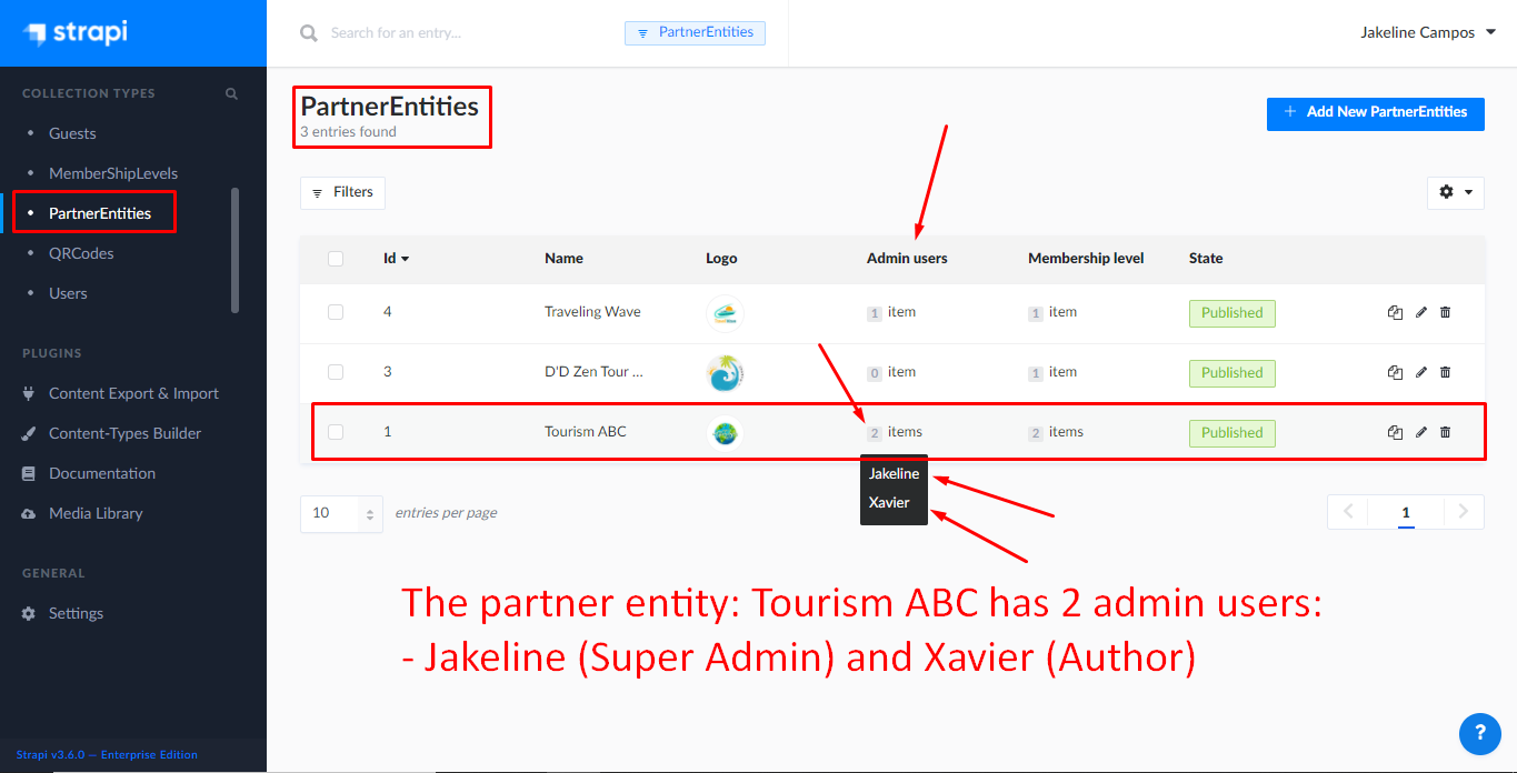 What I want: When an admin user with the role of “Author” logs in he should see all the “guests” of the partner_entity to which he belongs. Not just the ones he created.