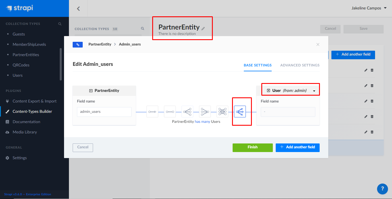 - Each “guest” belongs to another collectiontype “partner_entity”.